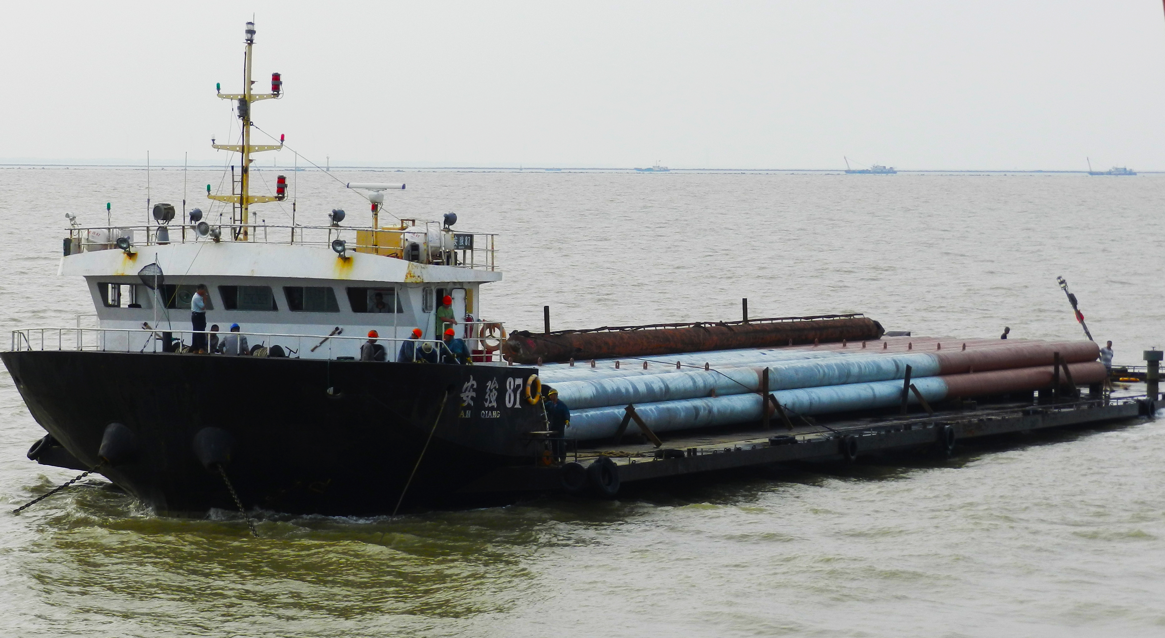 定海神针-射阳海洋潮位站基础桩(组照6-2)转运