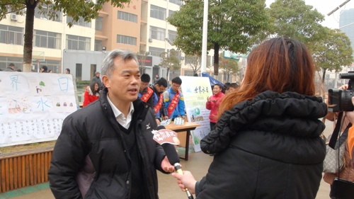 连云港市水利局副局长戴振伟在接受电视台采访中表示:连云港市是严重缺水城市,希望我们能利用有限的水来发挥最大的效益。这次宣传活动目的是在学生中树立惜水爱水意识,通过小手拉大手,带动全社会节约保护水资源。今年世界水日的主题是“节约保护水资源,大力建设生态文明”,我们紧紧围绕这一主题开展宣传活动,也是贯彻落实十八大精神,大力推进生态文明建设。(供稿:连云港分局胡菲菲 责编:省局办公室周瑜粼)