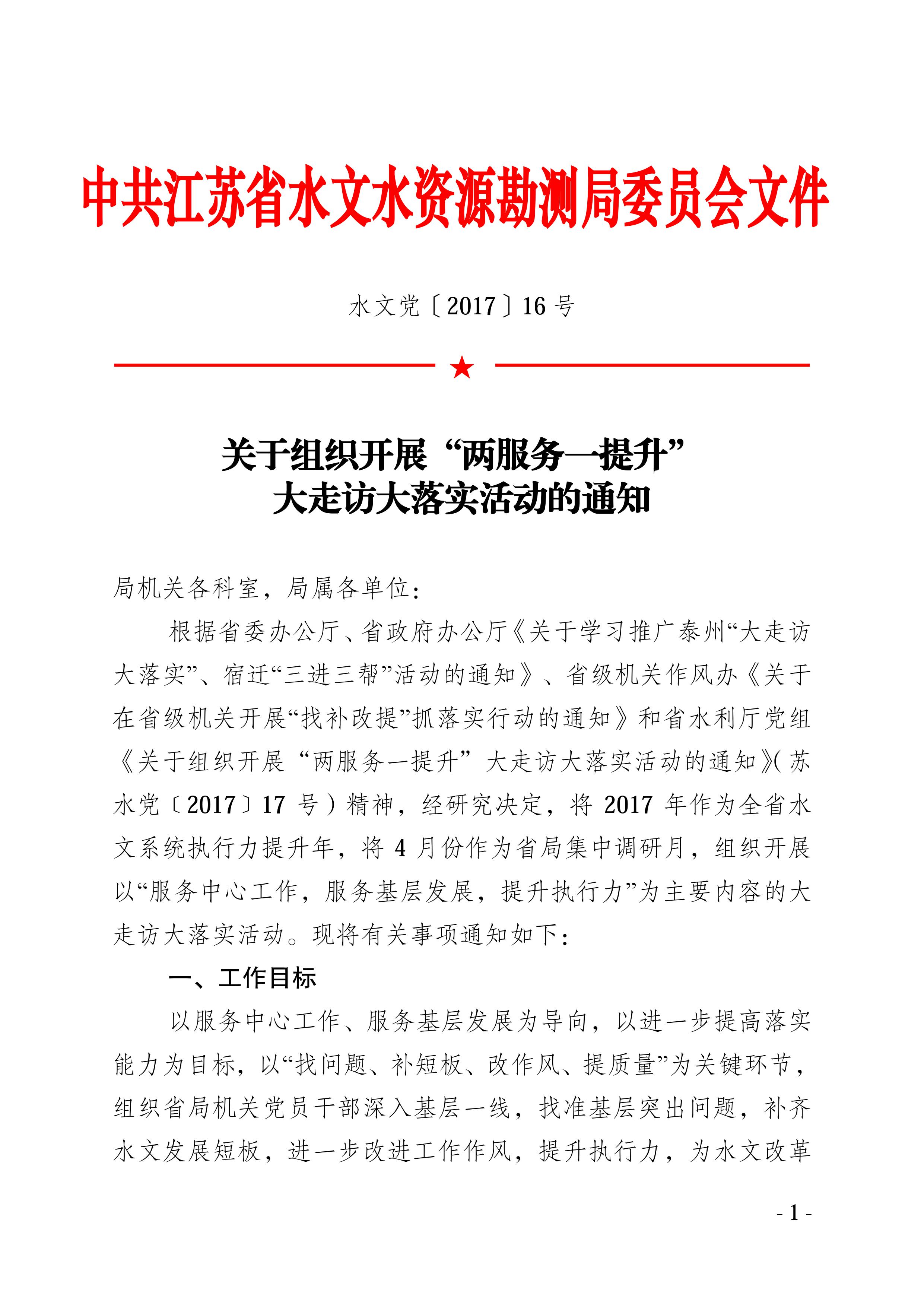 省水文局党委《关于组织开展”两服务一提升“大走访大落实活动的通知》